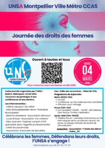 L’UNSA organise une journée pour les droits des femmes le mardi 4 mars 2025 en salle des rencontres. Tout les agents de la mairie, la métropole & du C.C.A.S. sont la bienvenue pour y participer….